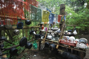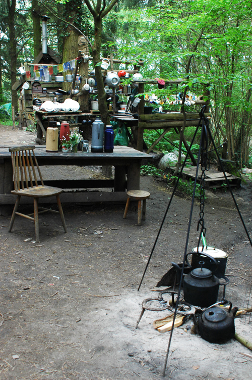 What particularly struck me at Tinkers was the warm unreserved welcome. Hundreds of people must pass through, as visitors, volunteers, even temporary residents, but they showed no wane in friendliness and continued humour, politeness and curiosity as yet another stranger asked them (probably very familiar) questions. With about 12 adults and several children on my visit there were plenty of faces to get to know. I am sure on my brief visit I could not have detected any of the politics that doubtless exist, and as with all communities there is a reasonable turnover in residents – with several long-termers and various newer people of just a few years. However, the act of eating a collective meal every dinner, of having to work a ‘domestic’ day every fortnight (when you do the washing up and cook the evening meal) seemed to provide an important glue to the residents’ busy lives. I felt very at home very quickly, even though I knew no-one and did not know how anything worked. On my first afternoon I helped make dinner which was an education in itself in the outside kitchen – cooking on the open fire and washing up in the outdoors sink.
