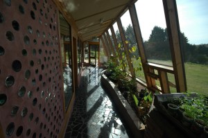 • An Earthship has food production as core to its design. It uses greywater planters inside to create an all-year growing season and be being inside and thus warmer it is possible to grow a broader range of fruits. This extends the remit of what a house should ‘do’ – it is not just about shelter and comfort, but food too.