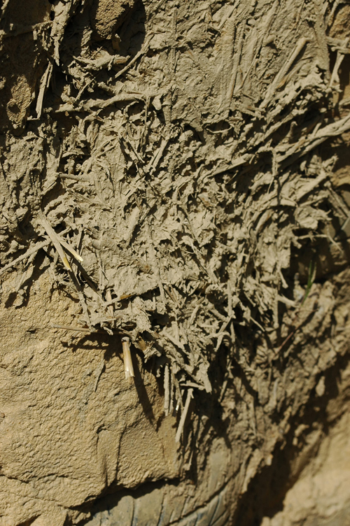 Paulina Wojciechowska (Earth Hands and Houses) taught us how to plaster a wall using clay. Using just clay, sand, straw and water we were able to create a variety of different textures over a rammed tyre wall. We created a base layer, which was thicker and gave a rougher finish, out of straw simply rubbed and covered in wet clay. This produced a very sticky material which you can sculpture. For the top layer we used sand and you would also use wheat paste at this stage to improve the resilience of the plaster. At this stage you can use a trowel to create a smooth texture. A great and easy way to make a plaster using local resources.