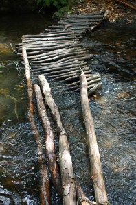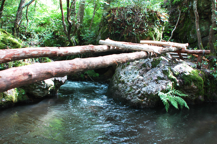 But then, walking down into the valley, I came across the broken bridge. The heavy rains of winter had clearly washed the wooden bridge away. It´s remains were scattered either side of the river, while some still traversed it – completed by a couple of thin logs bound together. The new bridge was in construction, but not enough to use with huge gaps and built at a height that the gaps were hard to jump.