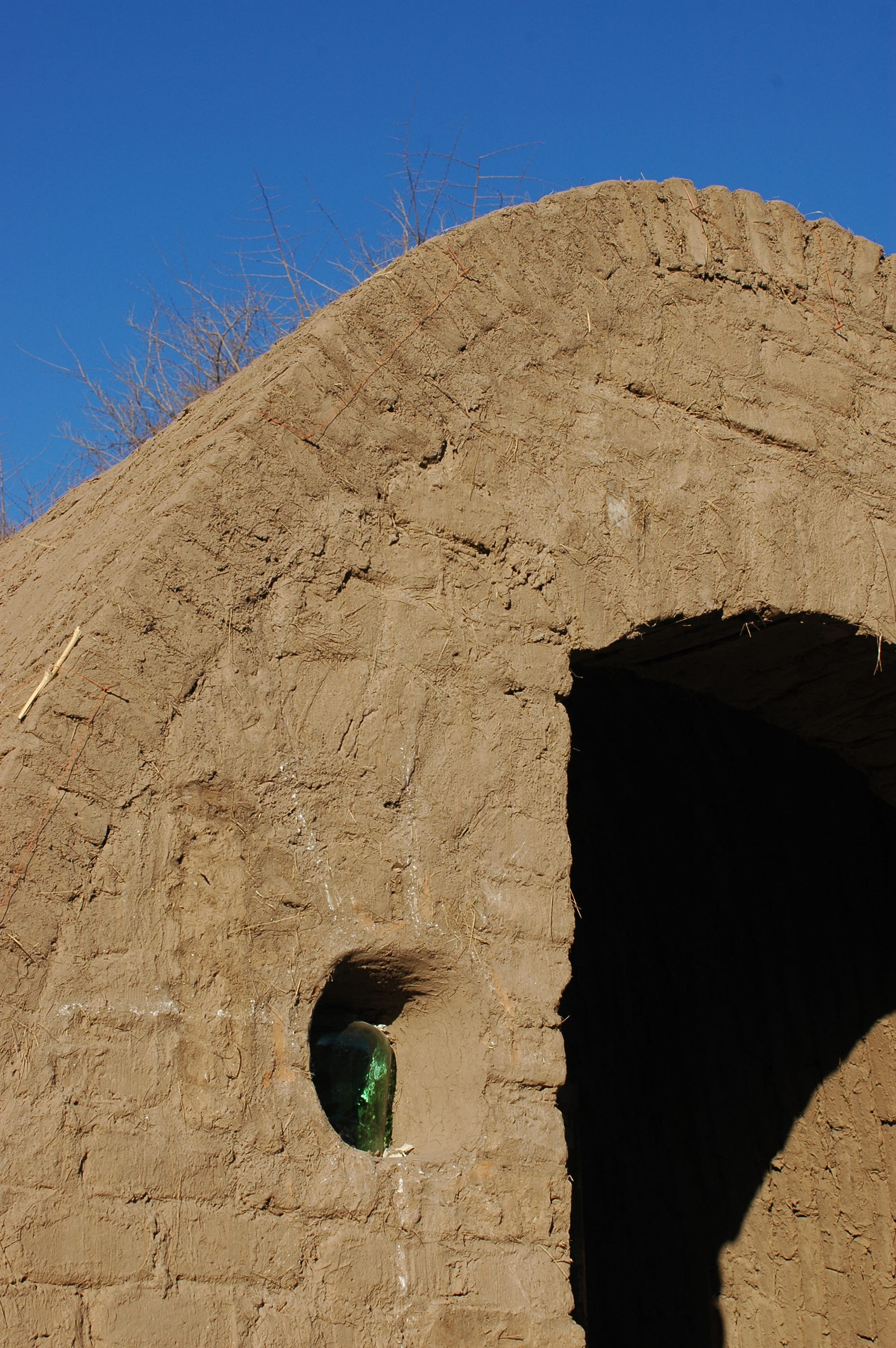 They chose to build in clay because it was cheap (rejecting the need for a 30 year mortgage for a tiny flat in the city), local, you can build curved walls, and it is easy (it forgives mistakes and can be easily maintained and repaired). Since building the living roof they have decided to avoid using wood as much as possible because it is very expensive and is not available locally. Similarly they rejected using straw because it is not easily available. If they chose to build adobe mainly because of cost they have also sought to make their build affordable by using workshop participants as cheap labour: “If we needed to pay builders natural building is not much cheaper than a conventional house. Labour is the same or more. Costs are a third materials but two-thirds in labour” (Diego). So they have only spent AR$ 5,000 (Argentinian pesos, £800) on the build. All they have had to buy is wood, glass, bags for the foundation (which they filled with rocks), some sand and some earth. Recently they have bought unfired clay bricks from the local brick factory because they are cheap and it saves them a great deal of time. In other words, the time savings are worth the cost and with similar justification they have occasionally used concrete if it saved them a week’s manual work. This build has not been quick – interrupted by having children, the necessity to make a living and a commitment to providing inspiring workshops which has meant starting a new building before others are complete in order to teach new skills. This time, of course, increases costs but has greatly enhanced their relationship with the local community and allowed them to experiment and alter their design.