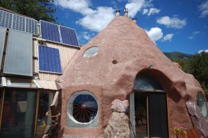A house made from bags of earth layered like bricks, Crestone, Colorado, USA