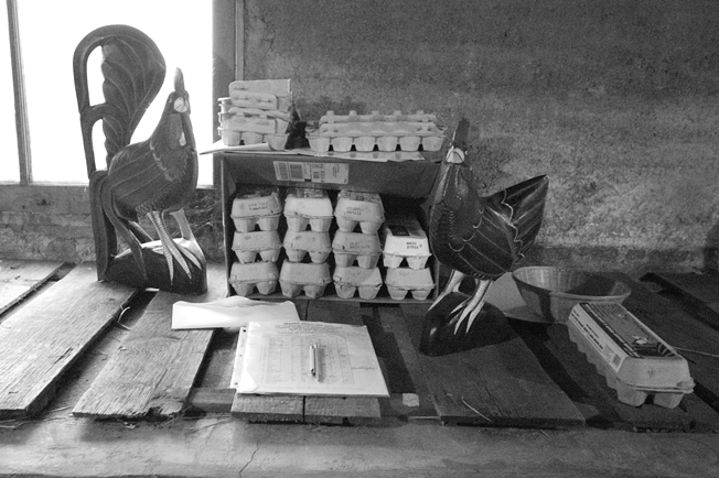 Trees at the back of the project and eggs from the chickens in the bulk food room