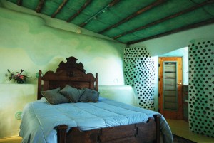 Inside the studio earthship at the Greater World Earthship Community in New Mexico, USA