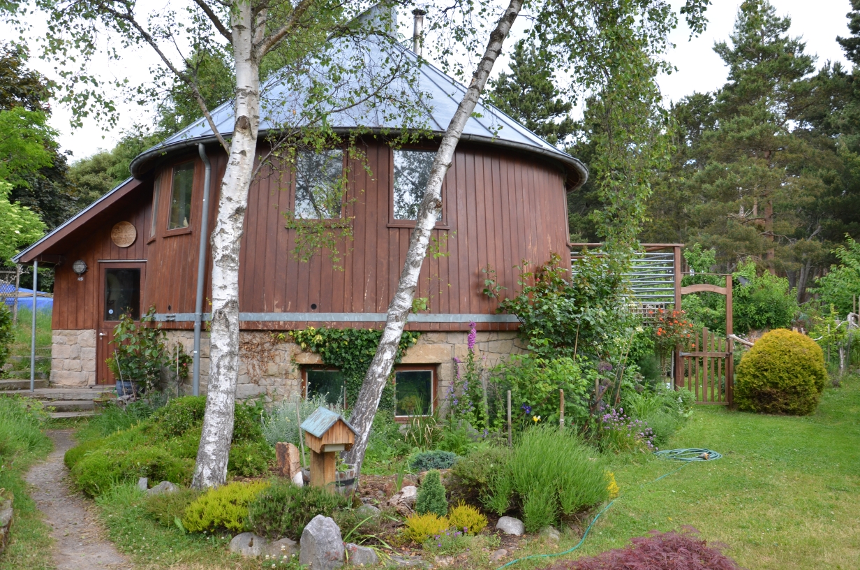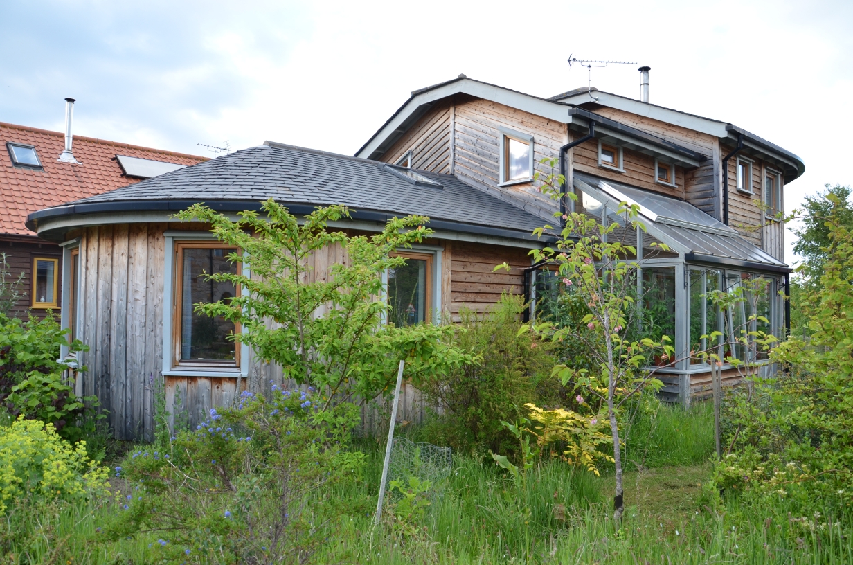 HOUSING DESIGN: The emphasis on co-creation with nature led to a focus on building better homes that were more ecological. Over the years a number of different forms and designs have been tried. There are houses made from old whisky barrels, strawbale, and tyres, but in the last few years Findhorn decided that the best houses for the climate and affordability are timber frame with high insulation. There are some excellent examples of individual buildings which are central to the community – such as the Universal Hall, Community Centre, and Guest Lodge, but what really interests me are the houses.