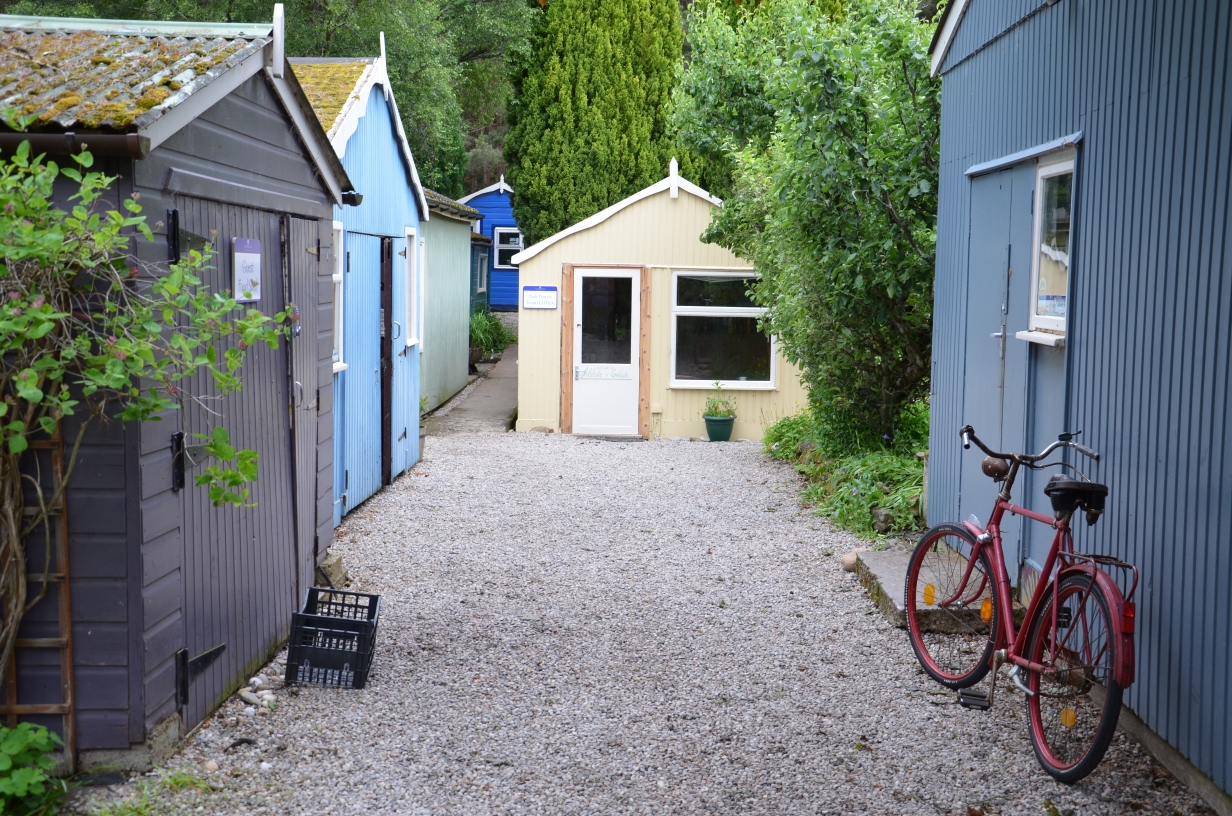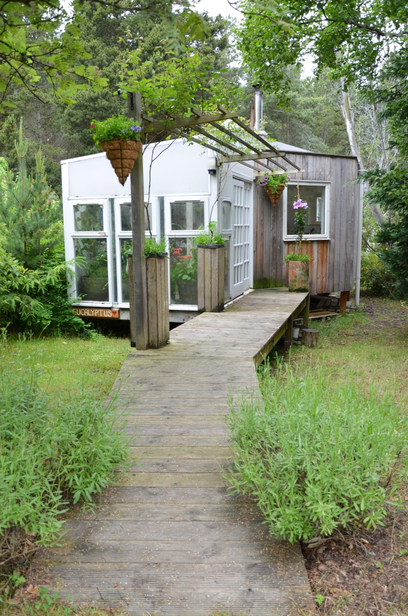 Most of these houses are ecological, inspiring, colourful, inviting and because there are so many it is hard to know where to start in exploring them. Of the buildings I stayed in and explored it was clear that timber frame worked well here and they are comfortable buildings. It is notable, however, that as with every development time changes things. At Bag End the houses were built to be passive solar, but at the same time Findhorn was on a tree-planting mission. These trees have since grown so that Bag End feels like it is in a deep woodland – thus cutting off much of the passive solar gain. In another example, in Field of Dreams which were more individually designed, not all residents have made sensible ecological choices, for example determining where to locate the wood stove according to looks rather than need. The houses have two other noticeable tensions; fences and vegetable growing. There are few private gardens growing vegetables, whether that is due to climate, pests or desire, food provision is obviously a central ecological practice. Findhorn had intended to discourage fences around houses, preferring to keep space common and shared, but gradually fences are being erected.